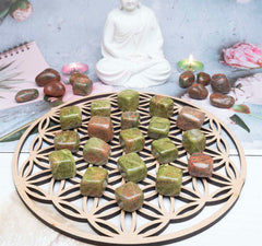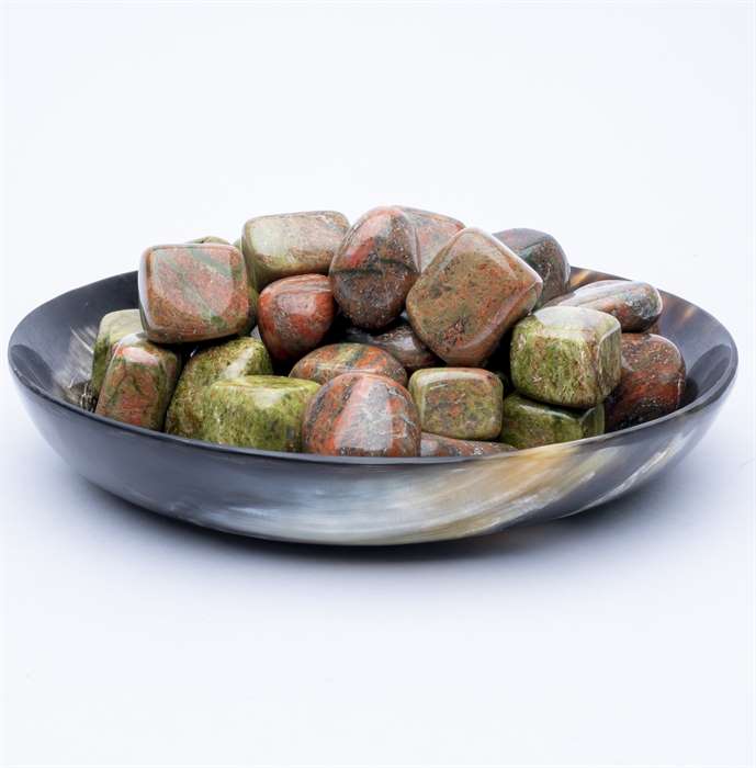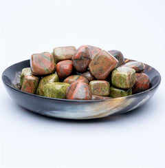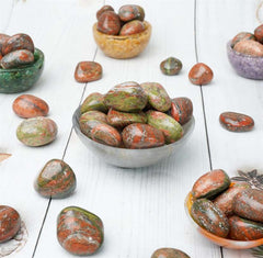 How can I use Unakite tumbled stones? You can use them in meditation, carry them with you for emotional healing and balance, incorporate them into crystal grids, or place them around your home or sacred space for promoting peace and harmony.